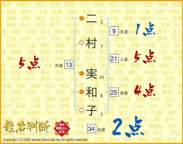 二村実和子さんの外運は13画の5点!