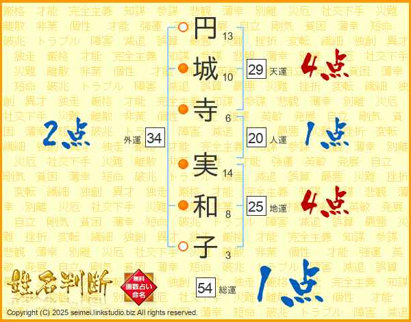 円(13画)城(10画)寺(6画)  実(14画)和(8画)子(3画)