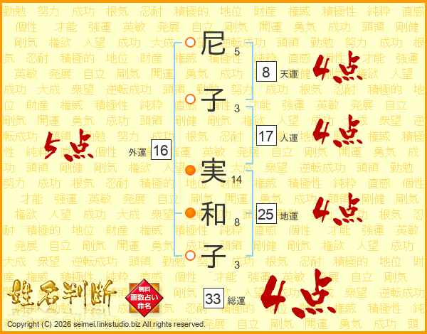 尼(5画)子(3画) 実(14画)和(8画)子(3画)