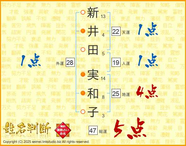 新(13画)井(4画)田(5画) 実(14画)和(8画)子(3画)