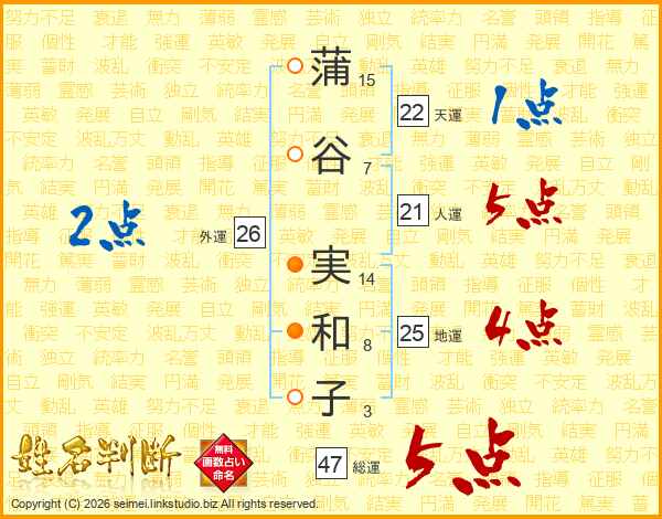 蒲谷実和子さんの総運は47画の5点!