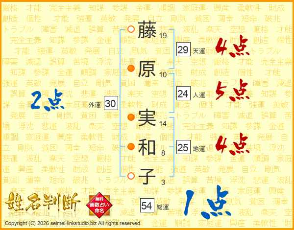 藤原実和子さんの総運は54画の1点!
