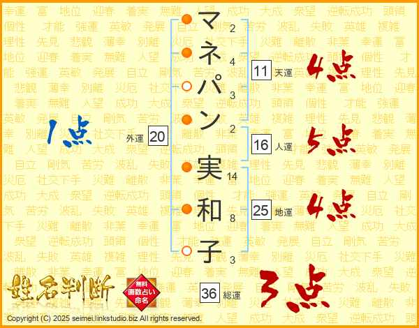 マ(2画)ネ(4画)パ(3画)ン(2画) 実(14画)和(8画)子(3画)