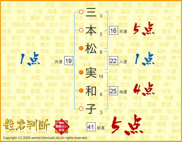 三本松実和子さんの総運は41画の5点!