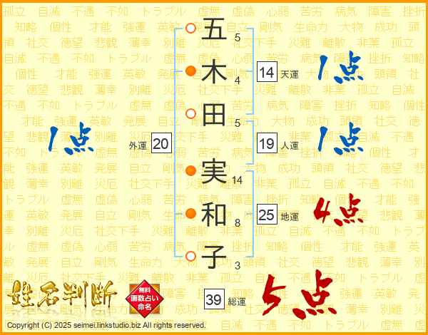 五(5画)木(4画)田(5画) 実(14画)和(8画)子(3画)