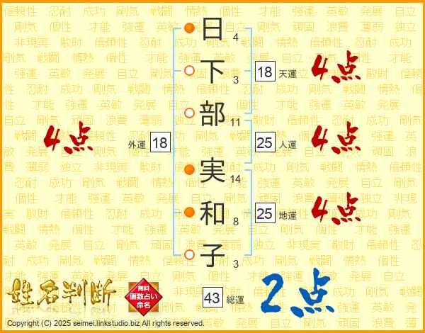 日下部実和子さんの地運は25画の4点!