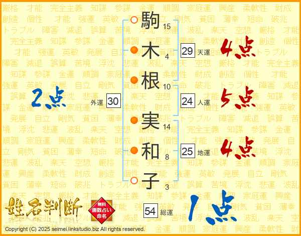 駒木根実和子さんの地運は25画の4点