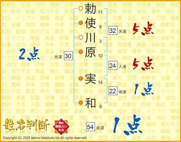 勅(11画)使(8画)川(3画)原(10画) 実(14画)和(8画)