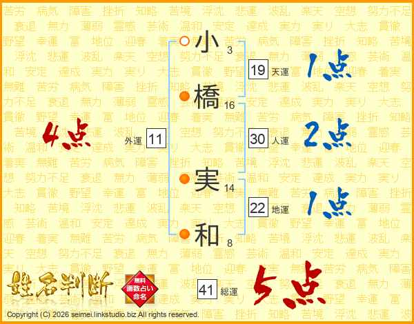 小橋実和さんの総運は41画の5点!