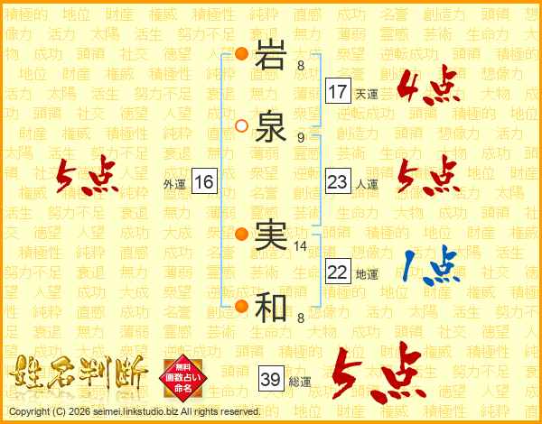岩(8画)泉(9画) 実(14画)和(8画)