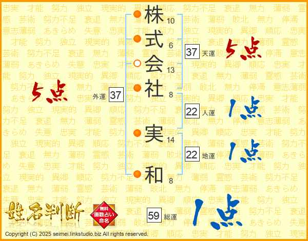 株(10画)式(6画)会(13画)社(8画) 実(14画)和(8画)
