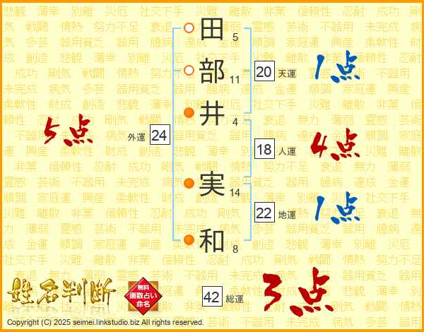 田(5画)部(11画)井(4画) 実(14画)和(8画)