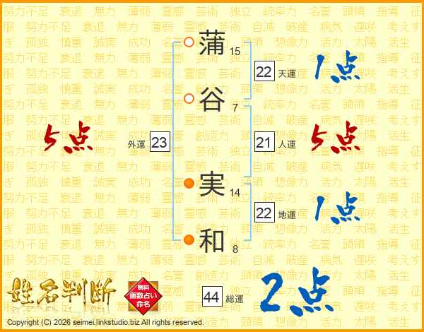 蒲谷実和さんの総運は44画の2点!