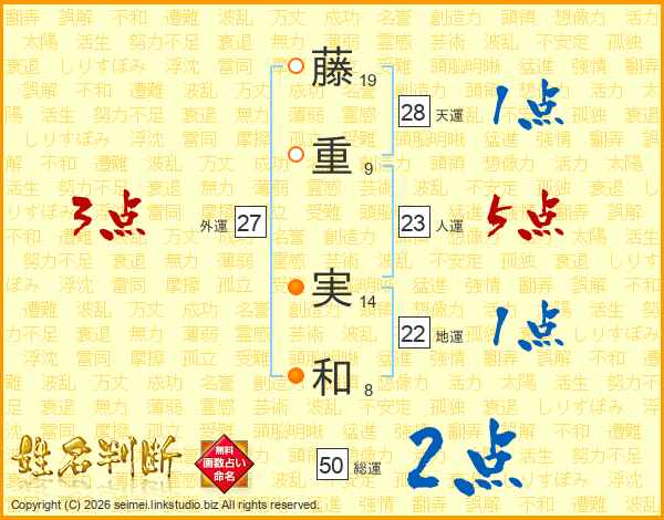 藤(19画)重(9画) 実(14画)和(8画)