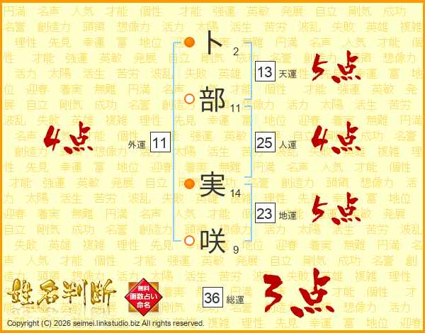 卜部実咲さんの総運は36画の3点!