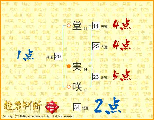 堂(11画) 実(14画)咲(9画)