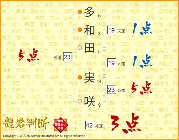 多(6画)和(8画)田(5画) 実(14画)咲(9画)