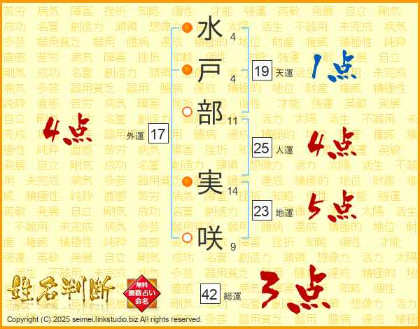 水戸部実咲さんの人運は25画の4点!
