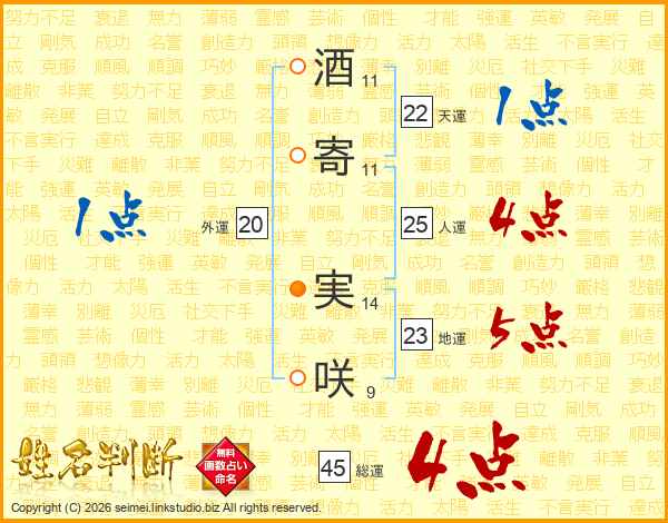 酒寄実咲さんの総運は45画の4点!