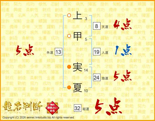 上甲実夏さんの総運は32画の5点!