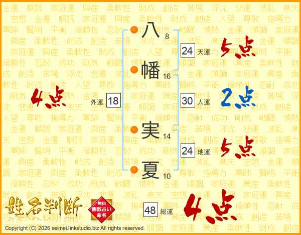 八幡実夏さんの総運は48画の4点!