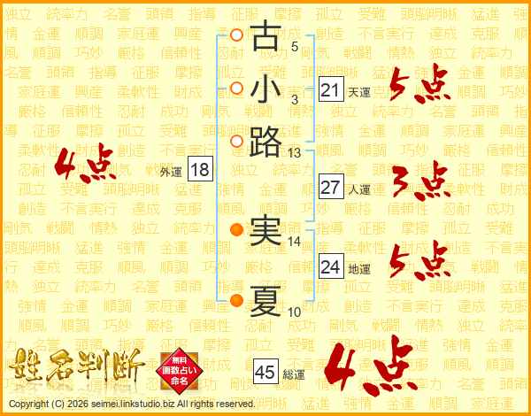 古(5画)小(3画)路(13画) 実(14画)夏(10画)