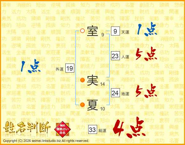 室実夏さんの総運は33画の4点!