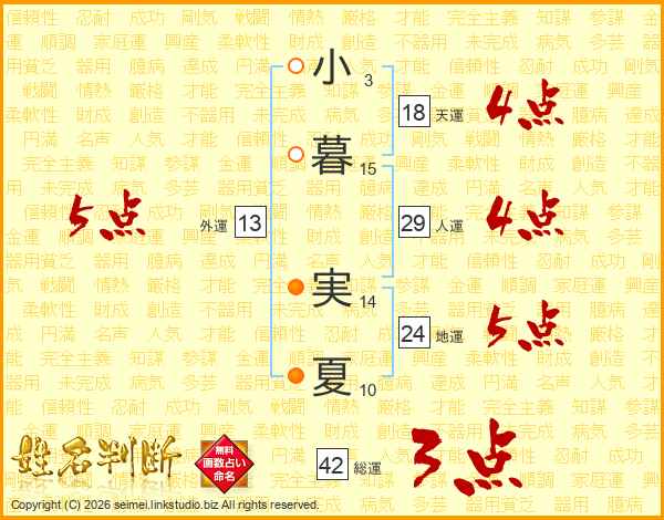 小暮実夏さんの天運は18画の4点!
