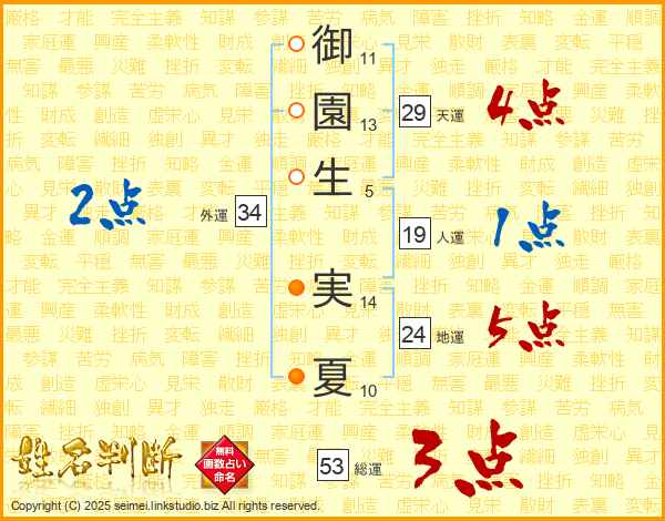 御園生実夏さんの総運は53画の3点!