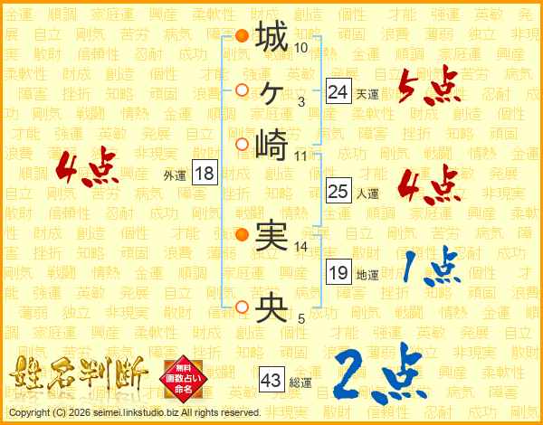 城ヶ崎実央さんの総運は43画の2点!