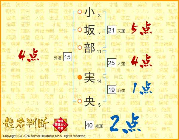 小(3画)坂(7画)部(11画) 実(14画)央(5画)