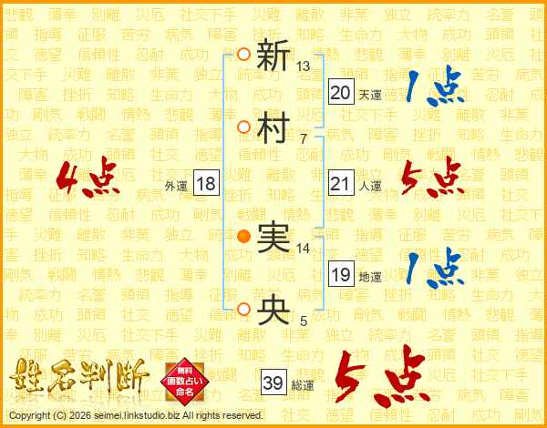 新村実央さんの総運は39画の5点!