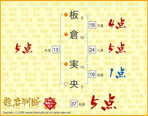 板倉実央さんの人運は24画の5点!
