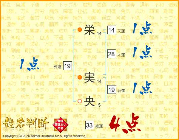 栄(14画) 実(14画)央(5画)