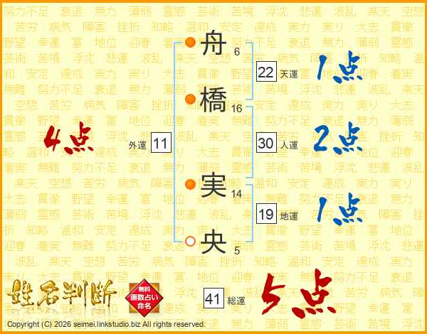 画数の奇数(○陽)と偶数(●陰)の配列で吉凶を占います。どちらかにかたよる名前は大凶名で避ける必要があります。画数の奇数偶数。