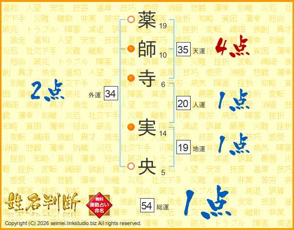 薬師寺実央さんの外運は34画の2点!