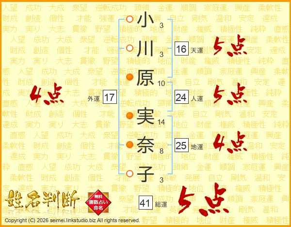 小川原実奈子さんの総運は41画の5点!