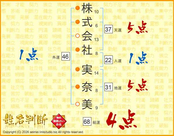 株式会社実奈美さんの総運は68画の4点!