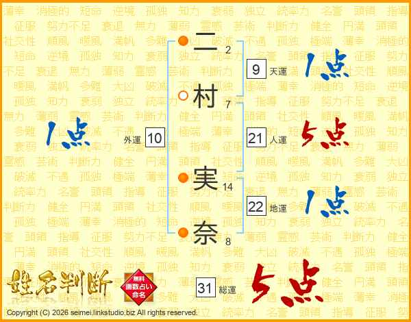 二村実奈さんの総運は31画の5点!
