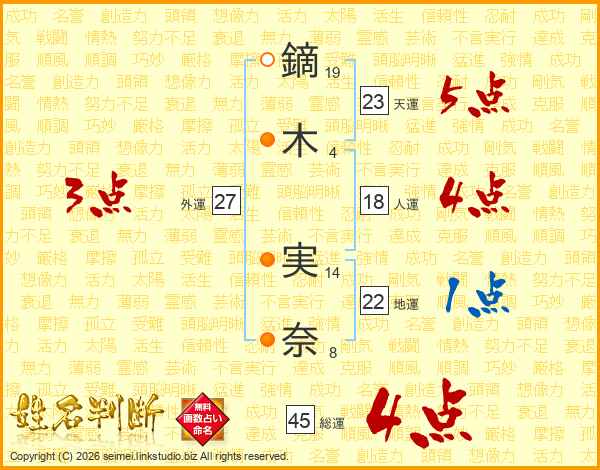 鏑(19画)木(4画) 実(14画)奈(8画)