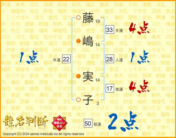 藤嶋実子さんの総運は50画の2点!