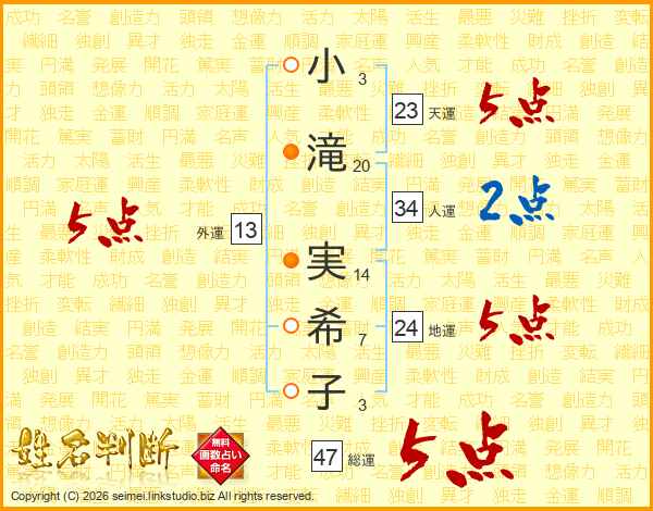 小滝実希子さんの総運は47画の5点!