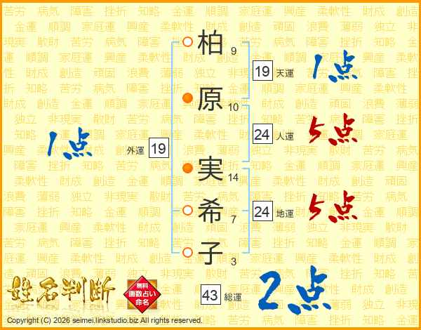 柏原実希子さんの外運は19画の1点!