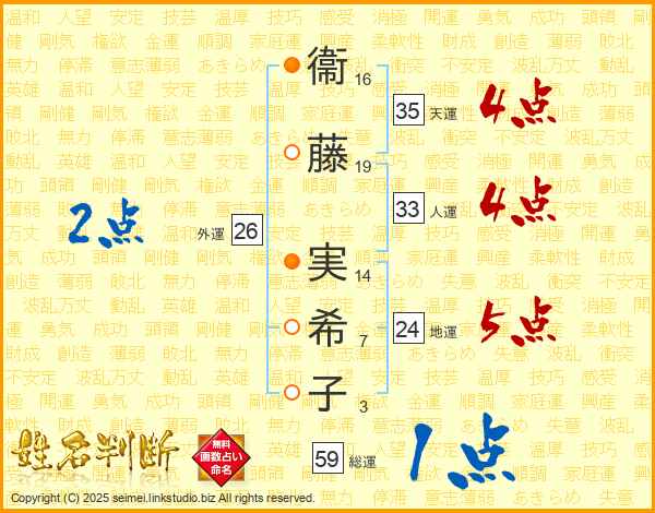 衞藤実希子さんの人運は33画の4点
