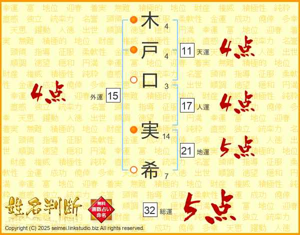 木戸口実希さんの総運は32画の5点!