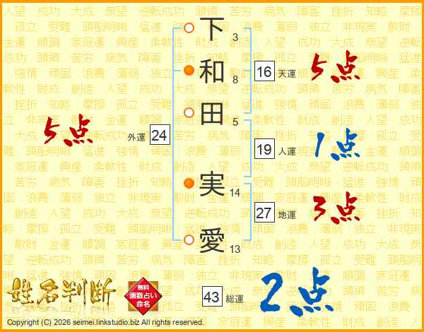 下和田実愛さんの総運は43画の2点!