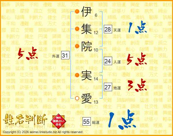 伊集院実愛さんの総運は55画の1点!