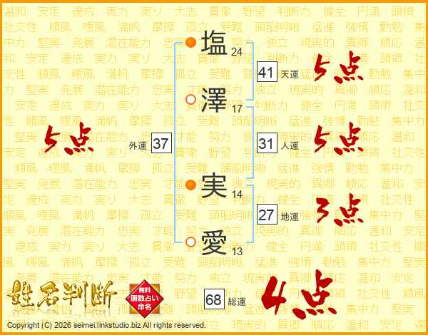 塩澤実愛さんの外運は37画の5点!