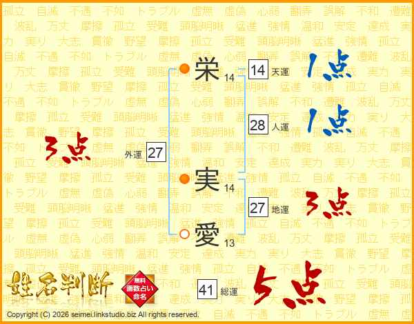 栄実愛さんの総運は41画の5点!