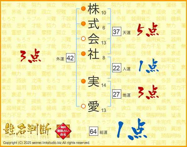 株(10画)式(6画)会(13画)社(8画) 実(14画)愛(13画)